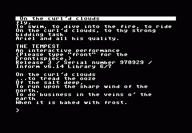 | The Tempest (Z-Code) | ???, 1997 |