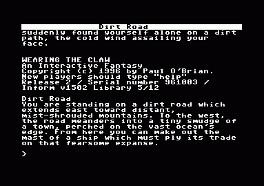 | Wearing the Claw (Z-Code) | Paul O'Brian, 1996 |