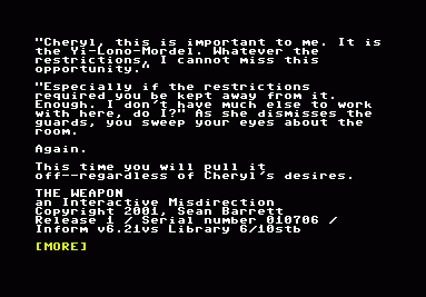 | The Weapon (Z-Code) | Sean Barrett, 2001 |
